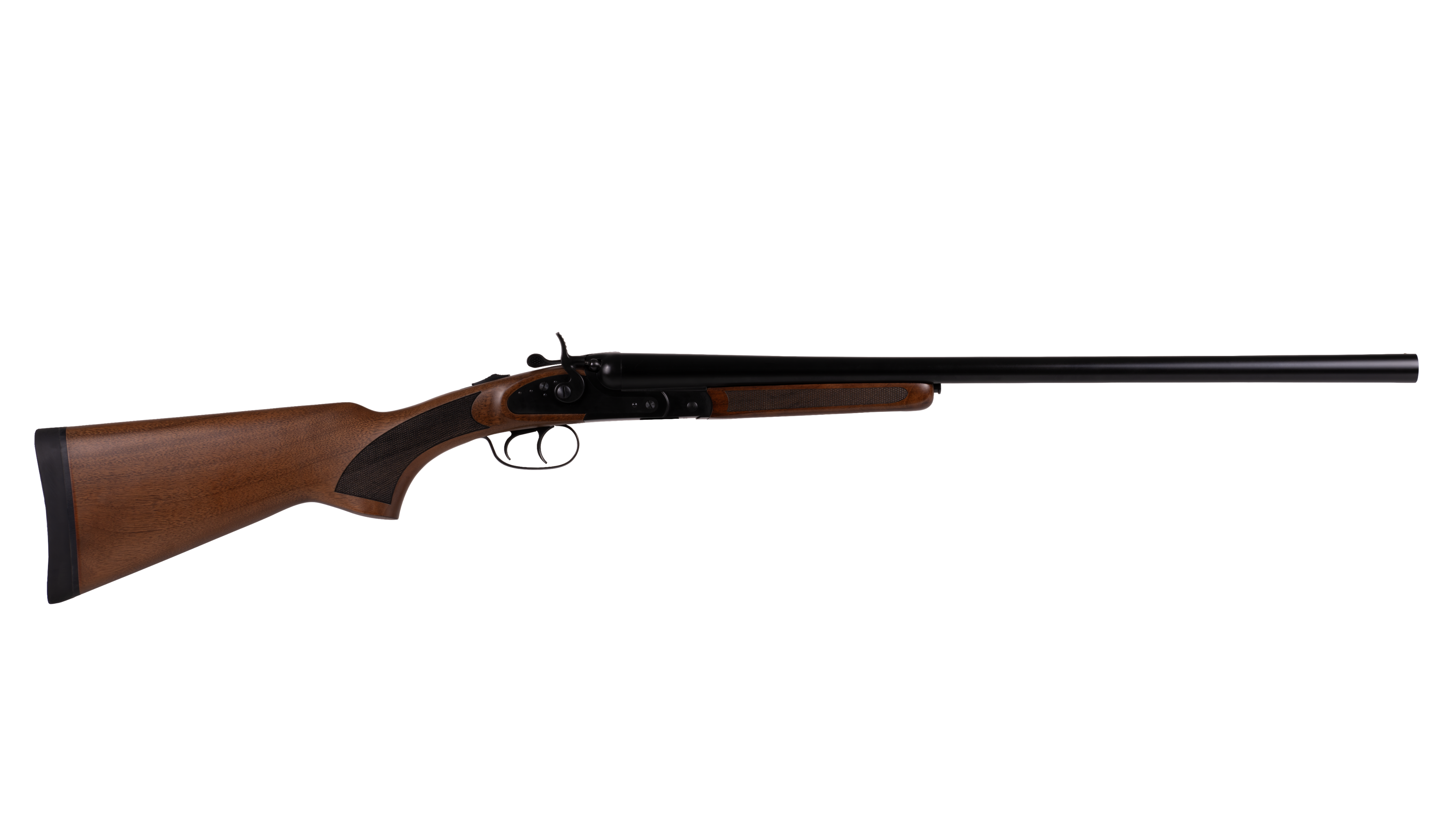 Introducing the EX1400, a sophisticated side-by-side shotgun where classic break-action meets premium innovation. Chambered in 12-gauge with a 2-round capacity, this steel-receiver beauty features a walnut stock, choke-threaded barrels, tang safety, and a black chrome finish. With a fixed bead sight and interchangeable chokes (F, M, IC), it's crafted for hunters and recreational shooters prioritizing reliable precision, making it your go-to for versatile field performance.