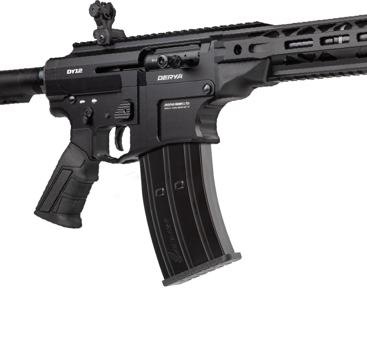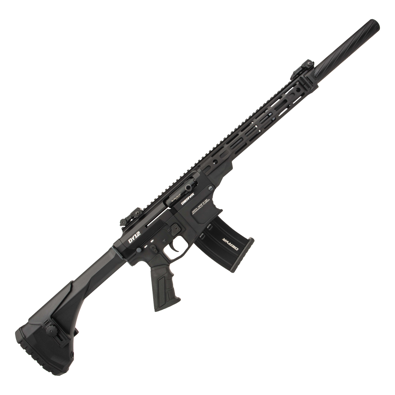 The Derya DY12 Fixed Magazine (MRB) 12GA Shotgun is a marvel of modern firearm engineering, combining the world-renowned reliability of Derya's platform with a robust, USA-manufactured design. Forged from 7075 T6 aluminum, its upper and lower receivers provide exceptional durability. This gas-operated, semi-automatic shotgun features AR-15 inspired ergonomics, including an adjustable mil-spec stock, a pistol grip, and intuitive controls for a familiar handling experience. Instead of being magazine-fed, it employs a fixed magazine with a magazine release block, offering a 10-round capacity, and accommodating both 2-3/4” and 3” shells. Wrapped in luxury, it comes in a premium soft case with additional accessories, ensuring that while functionality remains at its core, the DY12 also caters to the discerning shooter looking for quality and customization. Its design still allows for various aftermarket enhancements, ensuring that while the shotgun has a fixed internal magazine (MRB), its adaptability to the owner's needs remains uncompromised.