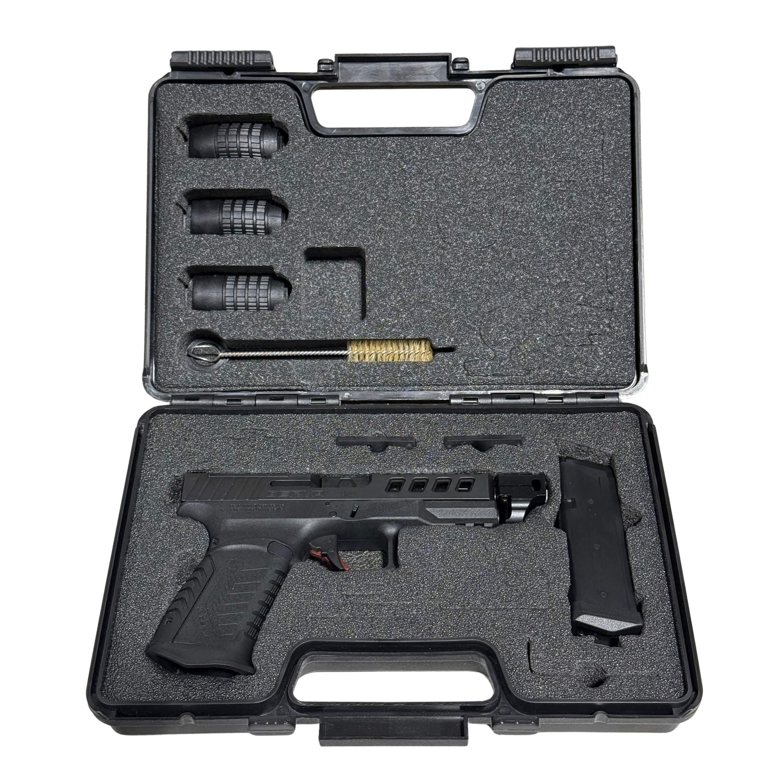 The Derya DY9 COMP is an elite striker-fired 9mm pistol meticulously crafted for unmatched performance and supreme adaptability. Chambered in dependable 9mm with a 15+1 capacity, it features a 4.64-inch threaded Stainless Steel barrel with a precision-engineered compensator attached to dramatically minimize muzzle rise and felt recoil, directing propellant gases upward for ultra-flat shooting, lightning-fast follow-up shots, and exceptional control even in high-pressure scenarios. The threading allows seamless swapping to a suppressor for discreet, whisper-quiet operation without compromising reliability. Optic-ready for effortless red dot integration, this sleek compact masterpiece excels in concealed carry, home defense, or range dominance, with fixed sights for rapid target acquisition, interchangeable backstraps for a customized ergonomic fit, and a rugged black melonite finish ensuring unparalleled accuracy and durability in the harshest conditions, all elevated by superior American craftsmanship, proudly made in Jacksonville, FL, USA.
